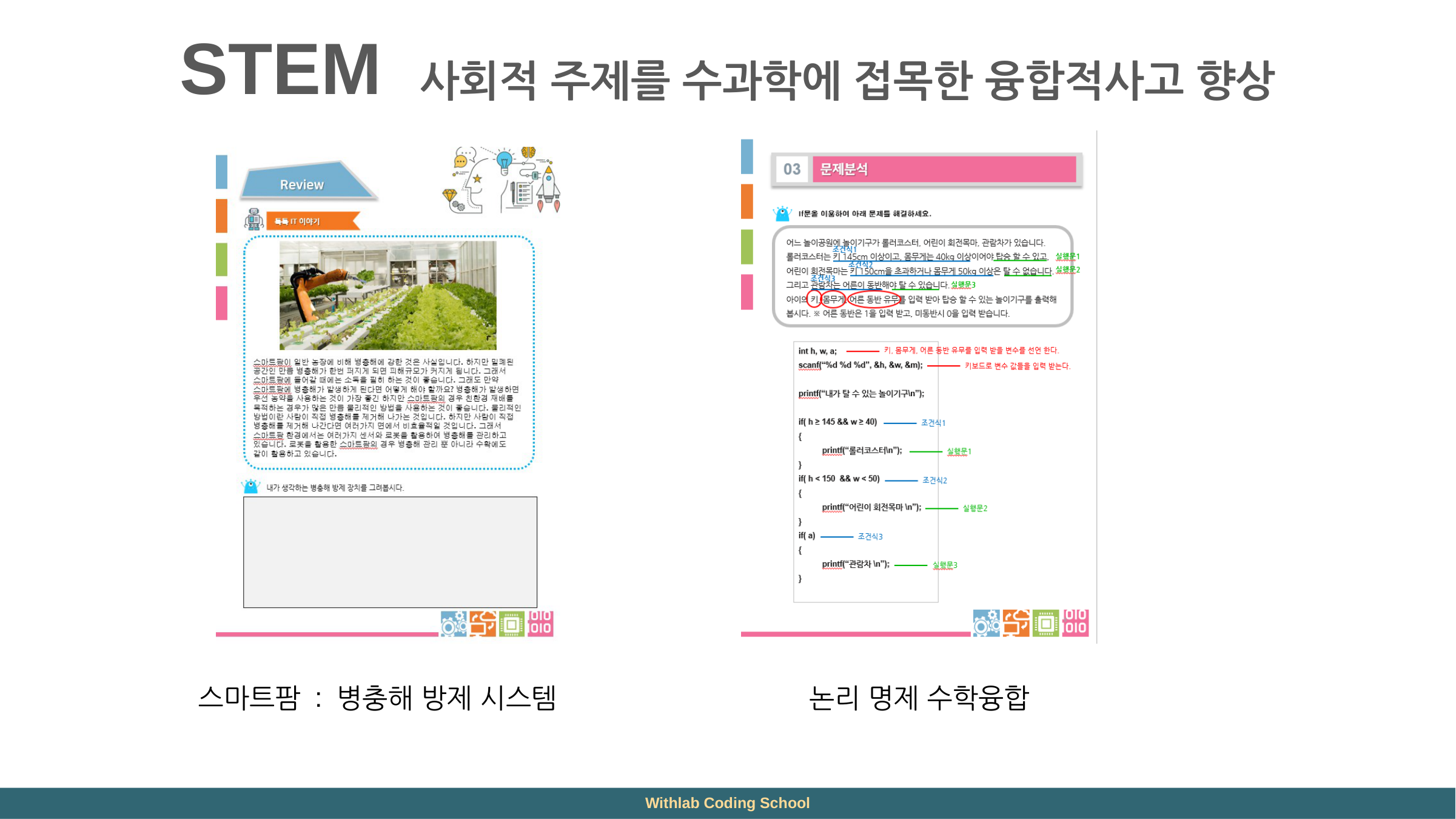 스토리텔링(읽기) → 문제 분석(요소추출) → 프로젝트 구현(STEM 확장)